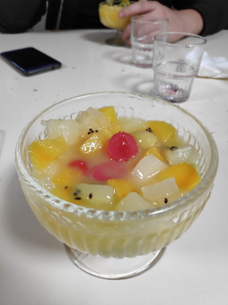 Ensuite premier dessert qu'on a pu déguster : une salade de fruits !