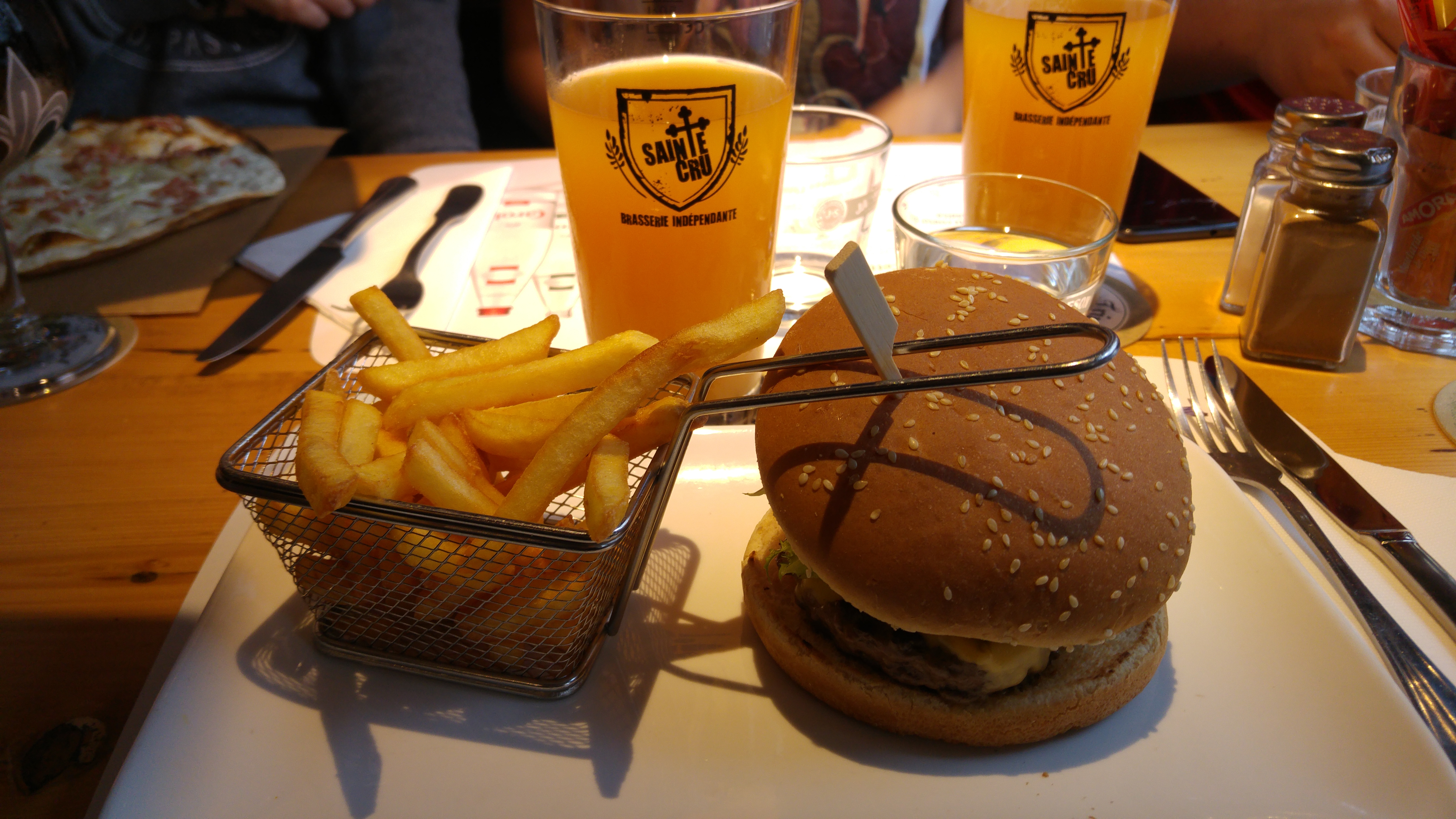 Pour manger, il y a en gros des salades, des burgers et des tartes flambées, nous avons opté pour les deux derniers choix.