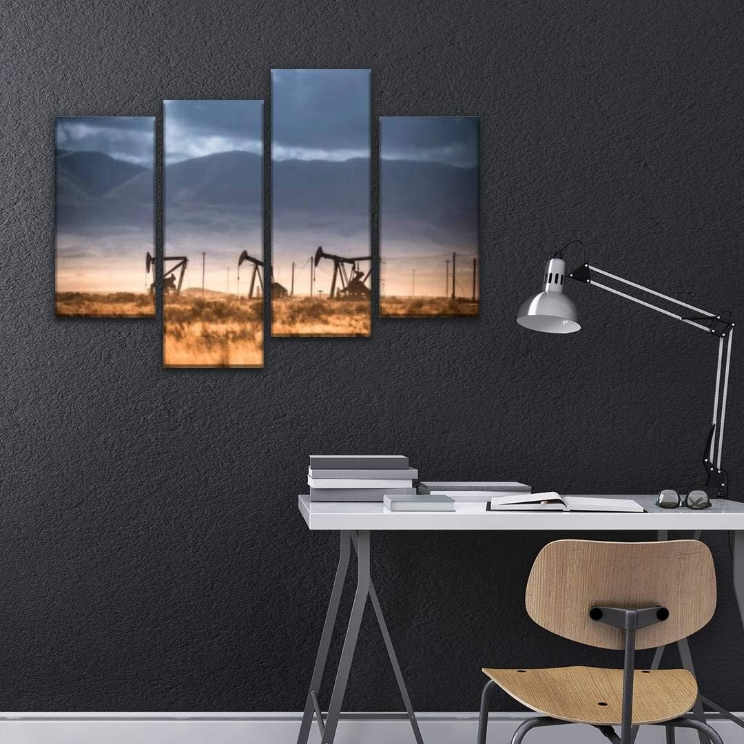 4 Panels Canvas paintings - oil, gas and fuel refinery oil industrys and pictures - Wall Art modern Posters Framed Ready to Hang for Home Wall Decor