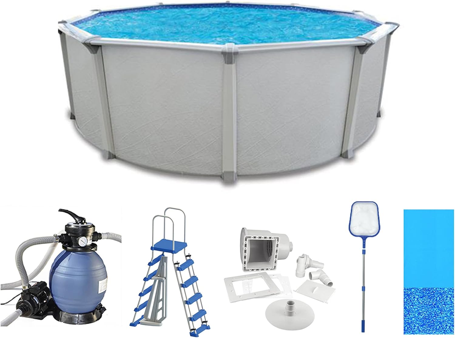 • DIY Pool Kit in Style: Kit includes an easy-to-assemble 21’ x 52” above ground pool for do-it-yourselfers plus a sand filter pump, pool liner, A-frame ladder, thru-wall skimmer, and net cleaner