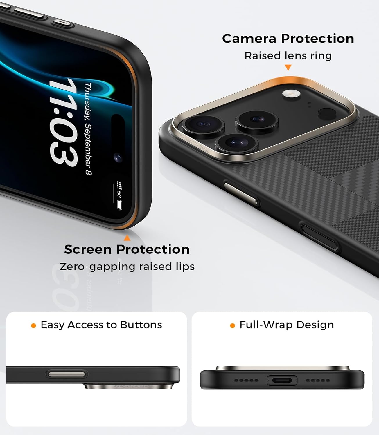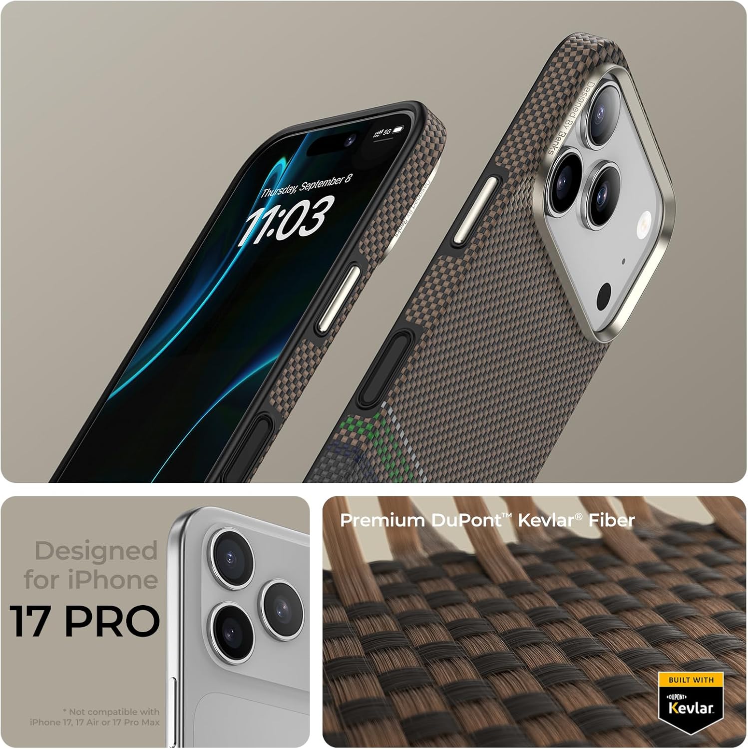• [Dupont Kevlar Fiber]: Crafted from 100% genuine DuPont Kevlar fiber, a lightweight yet incredibly durable material commonly used in aerospace and military applications, the ArmorPro iPhone 17 Pro Max aramid fiber case offers unmatched strength and long-lasting protection for your device.