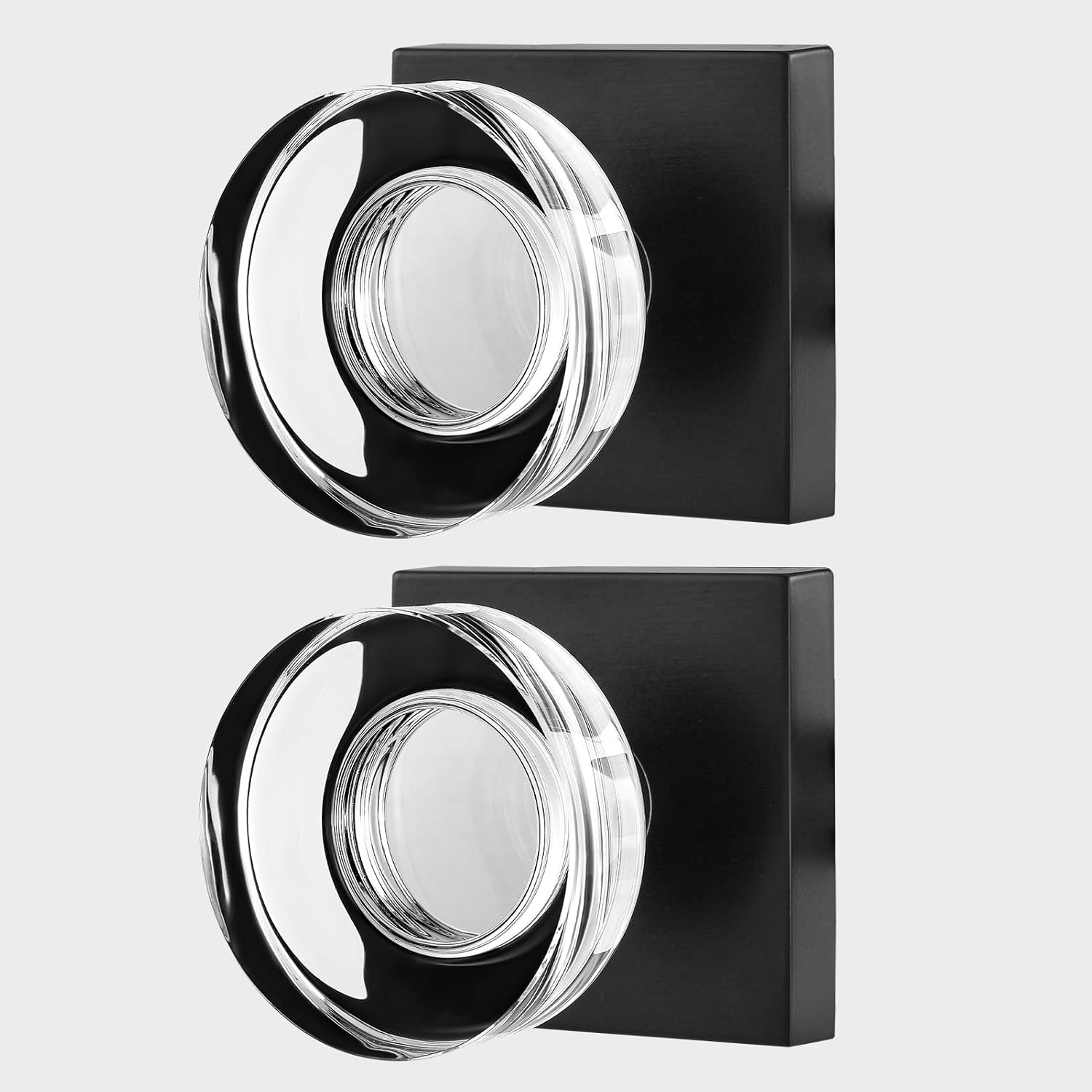 Black Passage Door Knobs Interior, Crystal Glass Door Knobs Interior for Hall and Closet, Matte Black