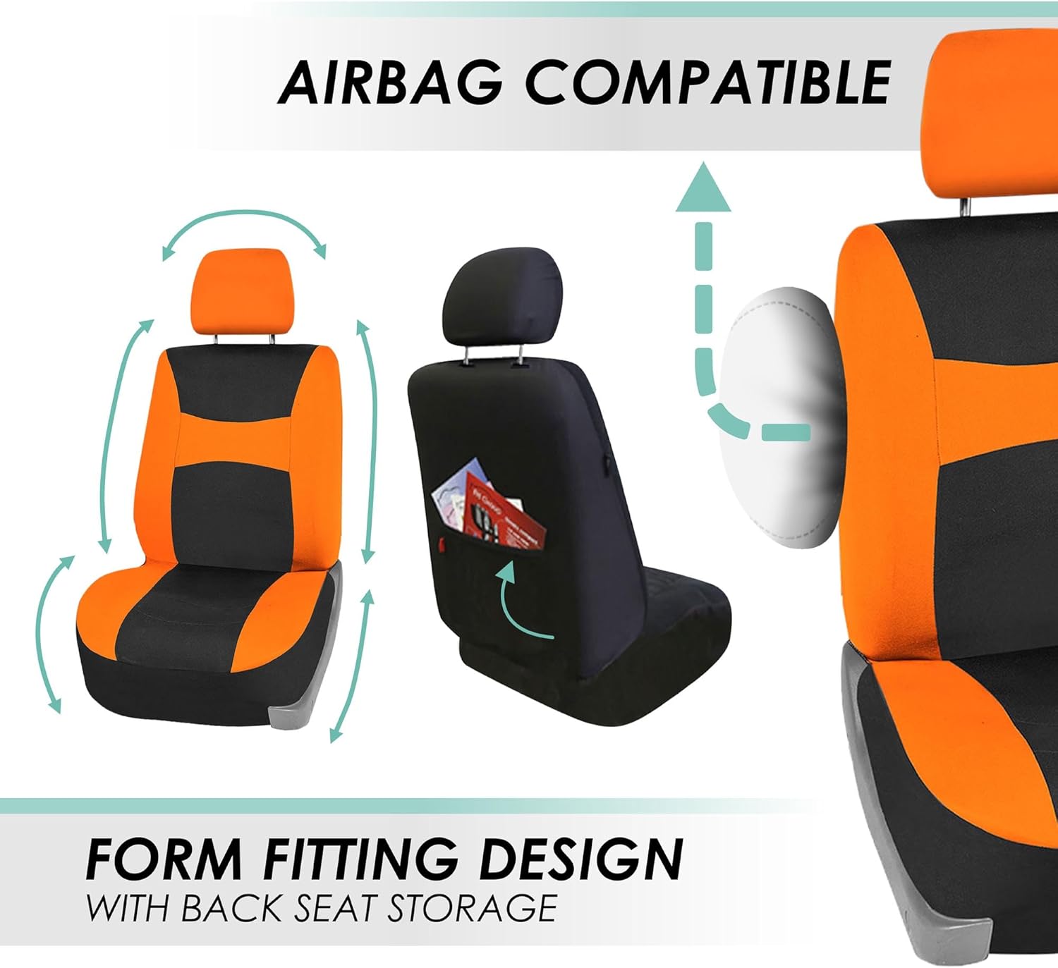 FH Group got you covered! Our full set of premium cloth car seat covers not only provides the best protection for your car's upholstery against any type of mess but also enhances the looks of your car's interior. No need to worry anymore about spills, stains, mud, or anything damaging your original car seats because this car seat protector got your back. This full set of car seat covers includes two front low back seat covers, which are compatible with most sedans, SUVs, and vansβ seats with removable headrests only. Our rear seat covers are fully compatible with 50/50, 40/60, or 60/40 split rear benches or longer benches. The cover features 3 zippers in the backrest AND bottom, and extra mesh pieces so you can move the rear seat freely or use the middle armrests and get full protection. We understand messes happen, and thatβs why these waterproof and washable seat covers for cars are convenient for any type of driver. We offer automotive seat covers in numerous fabrics, colors, and designs, so you can easily find the seat cover for cars that fits your style the most. We have car seat covers for women, men, and for everyone! FH Group car seat covers are a great car interior accessory for your vehicle. We have it all: car seat covers for SUV, car seat covers for autos, car seat covers for vans, you name it!