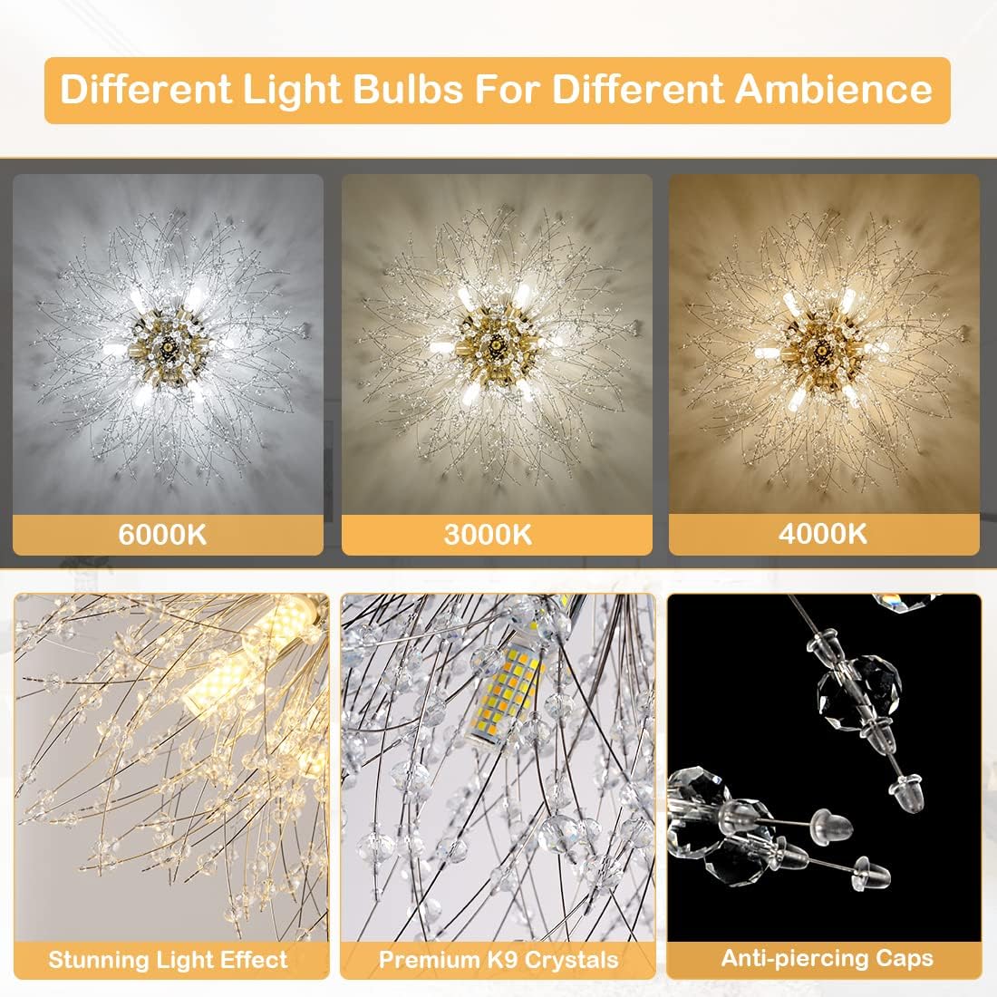 HMVPL Crystal Sputnik Firework Close to Ceiling Light, Modern LED Lamp for Bedroom, Kitchen, Island, Entryway, Hallway, Foyer