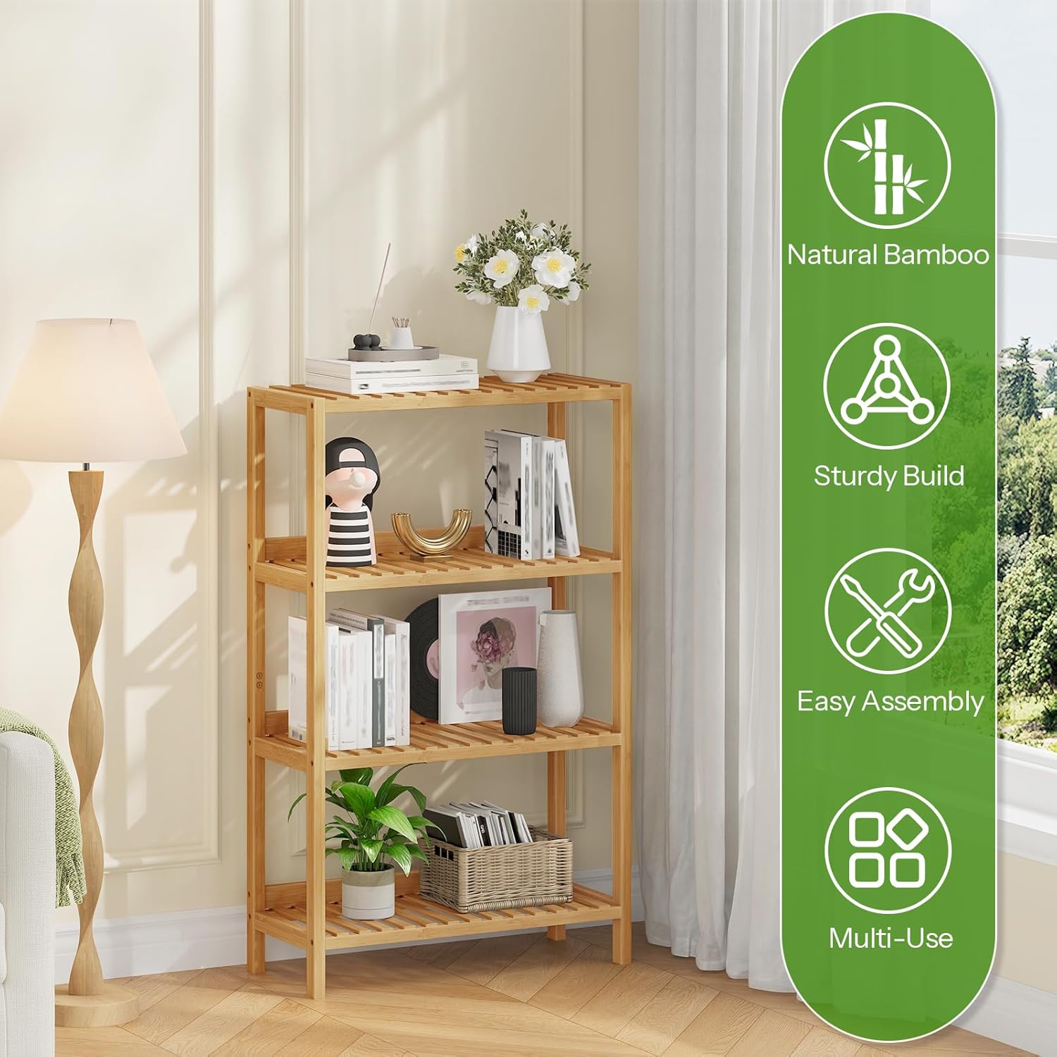 | Special Feature | 5-Tier Bamboo Shelf, Bamboo Standing Shelf Units, Bamboo Storage Shelf, Freestanding Shelf Units, Storage Rack |