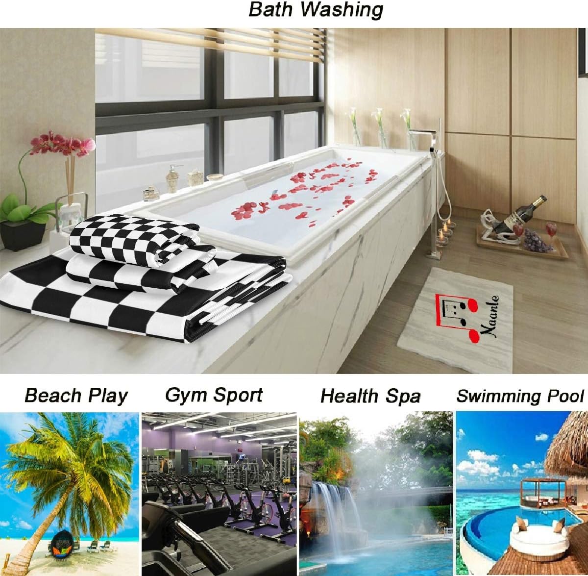 Naanle high quality hand towels are outstanding value for everyday towel.We made our towels to meet the daily needs of your whole family.Try our trendy design,deliciously soft, highly absorbent, and excellent value Hand Towels and you'll be glad that you did!Generous terry towel is lightweight and super absorbent, yet dries quickly.Fashionable printed hand towels will add an unique & vogue look to any bath room, guest room, gymnasium, swimming pool, journey using etc.Features include:3 Pieces Towels Sized: 1 pcs 60x30inch,1 pcs 28x16inch,1 pcs 13*13inch. 3 Pcs/Package. Strong finished edges.Super-absorbent,lightweight,top quality materialSoft enoughMachine washable Dries quicklyCan be used for a multitude of household tasksWashing InstructionsBefore you start using your towels, it is advised to wash them.Wash towels separately from all other items of clothing.Not use too hot water to wash towels.We really appreciate it if we could get some feedback about our products or services once you receive your order, So that we can improve it.If you have any questions please contact customer service, we will provide you with the most satisfactory solution, Thank you so much for your trust!