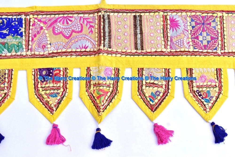 Breathtaking embroidered door or window valance from Barmer, India made from vintage saris and other recycled fabrics. This desert town near Jaisalmer on the Pakistan border is renowned for producing amazing works of patchwork art! Patches covered with intricate thread work are carefully cut and sown together to create stunning collages of color and texture. This stunning ornamental piece can be hung over a window or door to add bright, invigorating colors to your home décor! 100% handmade and one-of-a-kind, this piece includes hooks for easy hanging! Get this beautiful item now directly from India at a price you won't find anywhere guaranteed!